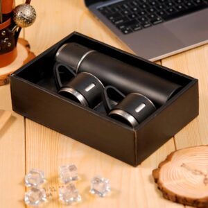 Introducing our Stainless Steel Double Wall Coffee Hot and Cold Keeping Drink Water Vacuum Flask Set. This versatile and convenient set includes a steel vacuum insulated thermos flask with a capacity of 500ml, along with 2 steel cups.