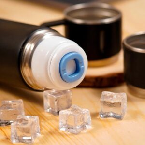 - Coffee, water, and other hot and cold beverages can be stored in this vacuum-insulated 500 ml stainless steel Thermos bottle with cup.